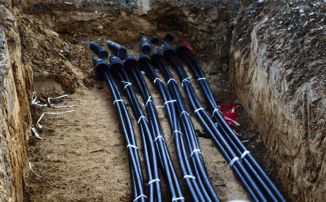 Specialised installation of mains cabling from network pillars to metre boxes with proper segregation, depth, and protection according to distributor regulations.